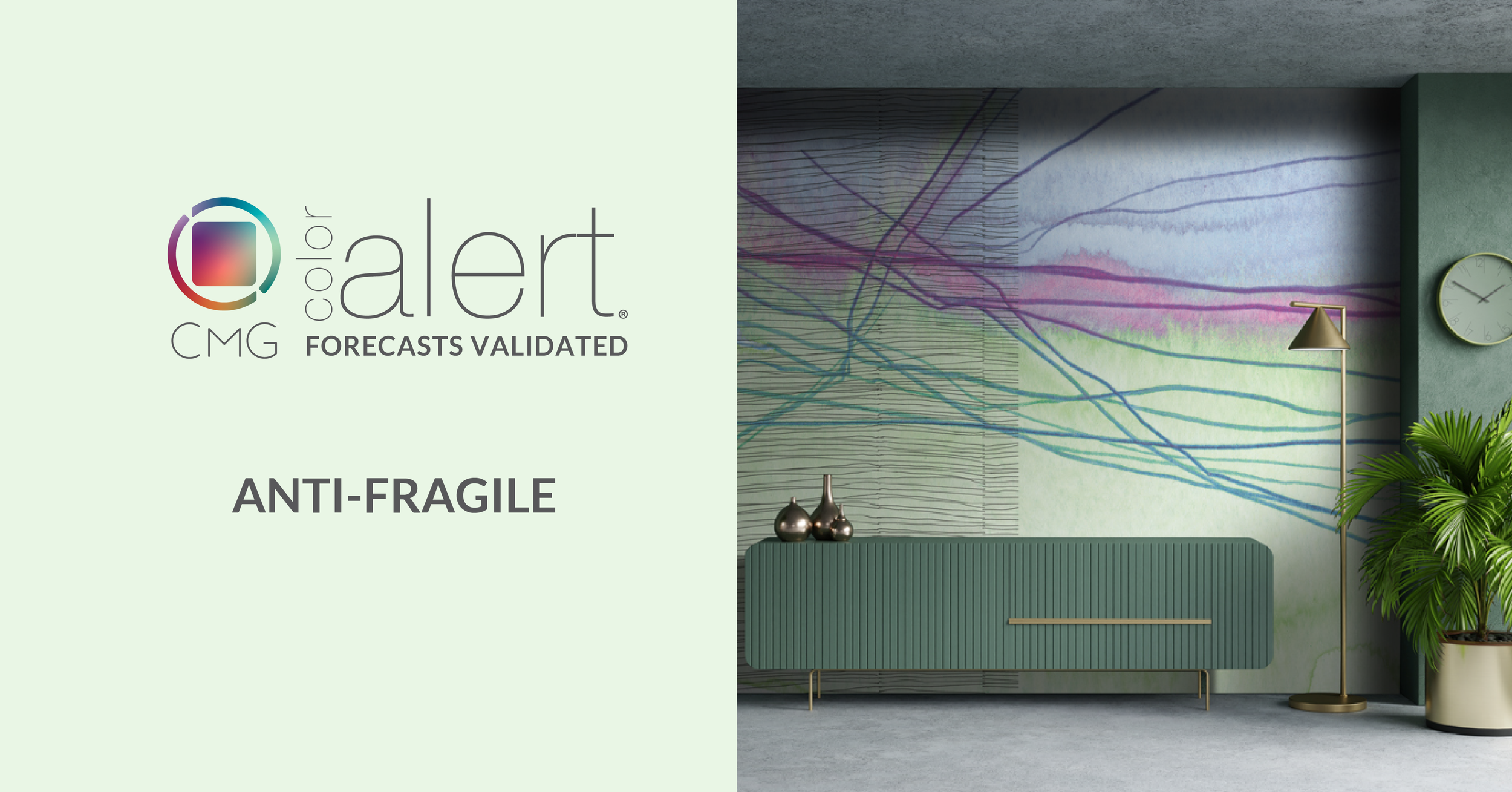As green embarks on a journey towards somewhat complex, desaturated values, it provides opportunities to embody essence of change. Anti-Fragile is ready to burst through the former simplicity of green as a hue that celebrates change. From fashion to health and wellness, home décor to retail and commercial interiors, Anti-Fragile can fill a space with subtle light, act as a balance to deeper hues, and revel in its ability to be, at once, light and fresh, and clean and strong.